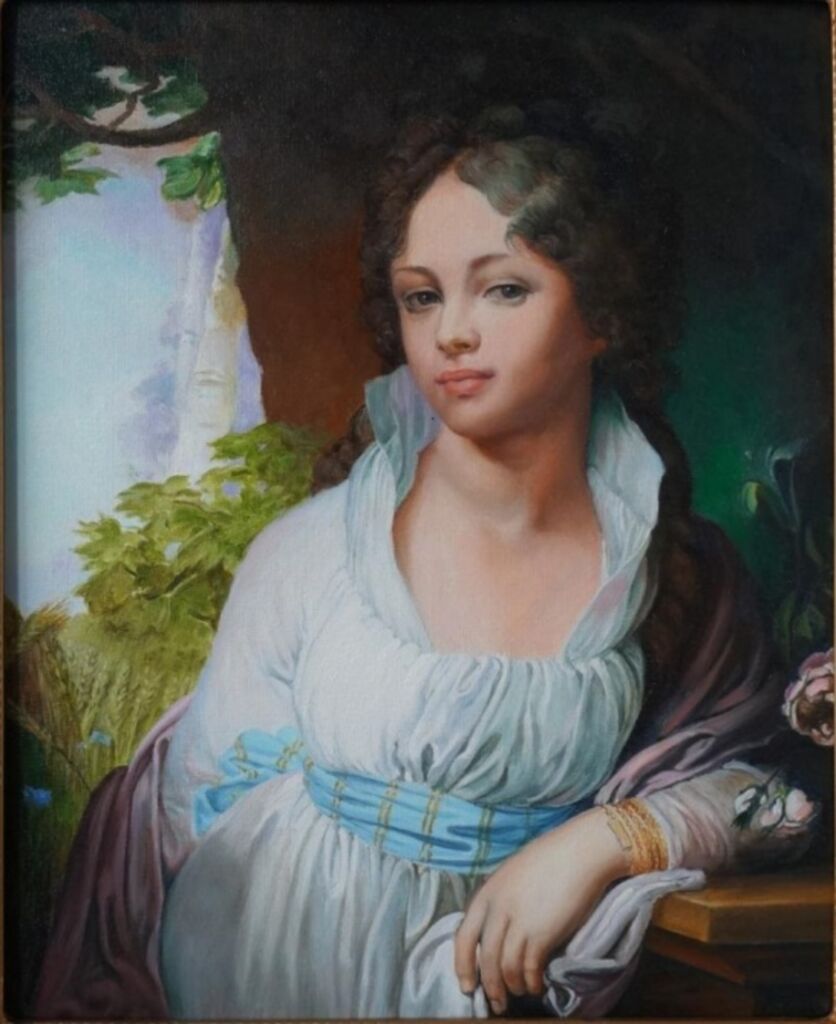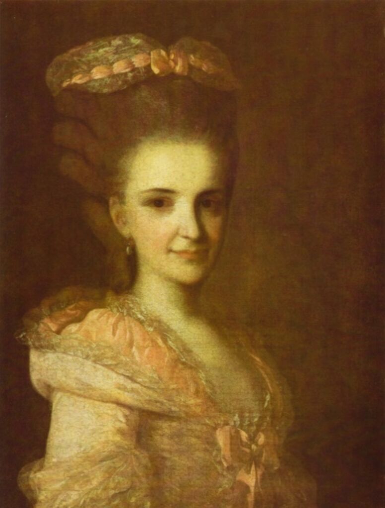 Наивысшего расцвета портретная живопись достигает в творчестве В.Л. Боровиковского, известного картиной "М.И. Лопухина".; Ф.С. Рокотова – «Неизвестная в розовом платье»;
