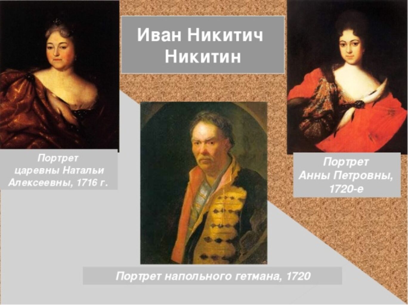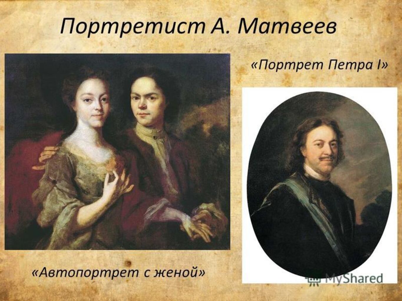 XVIII век стал временем расцвета русской живописи. Русская портретная живопись поднимается до уровня лучших образцов европейского искусства. Выдающимися портретистами того времени были Иван Никитич Никитин и Андрей Матвеев которые неоднократно писали портреты Петра I и портреты других выдающихся людей того времени.