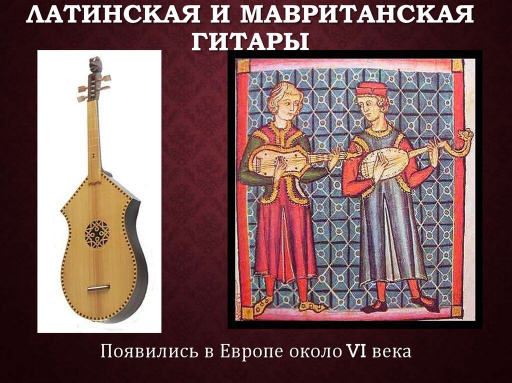 Так что, кто именно был предком гитары, и когда она попала в Европу достоверно неизвестно. Историки и искусствоведы до сих пор не знают точного ответа, возможно, это была арабская лютня, азиатская китара или древняя кифара.