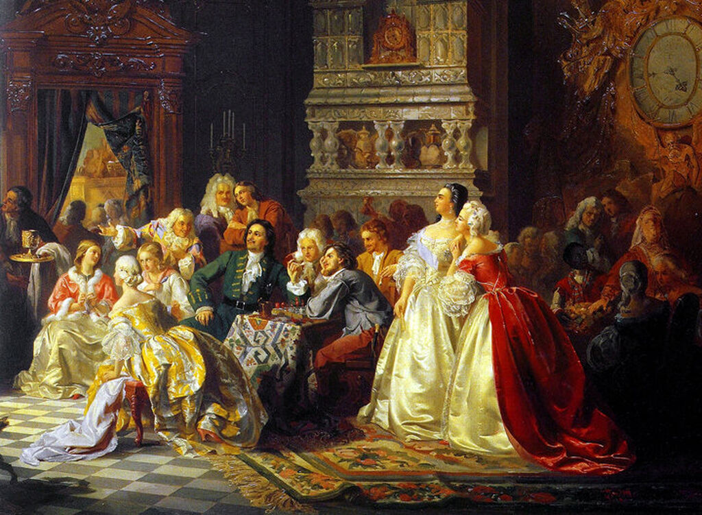 Сын Алексея Михайловича, император Пётр I, любил принимать участие в танцах. Современники императора говорили, что он «выделывал такие каприоли, которые составили бы честь лучшим европейским балетмейстерам того времени». При Петре I танцы стали составной частью придворного этикета, чему способствовал указ 1718 года об ассамблеях. Приказывалось не только являться на них в европейском платье и париках, но и участвовать в танцах.