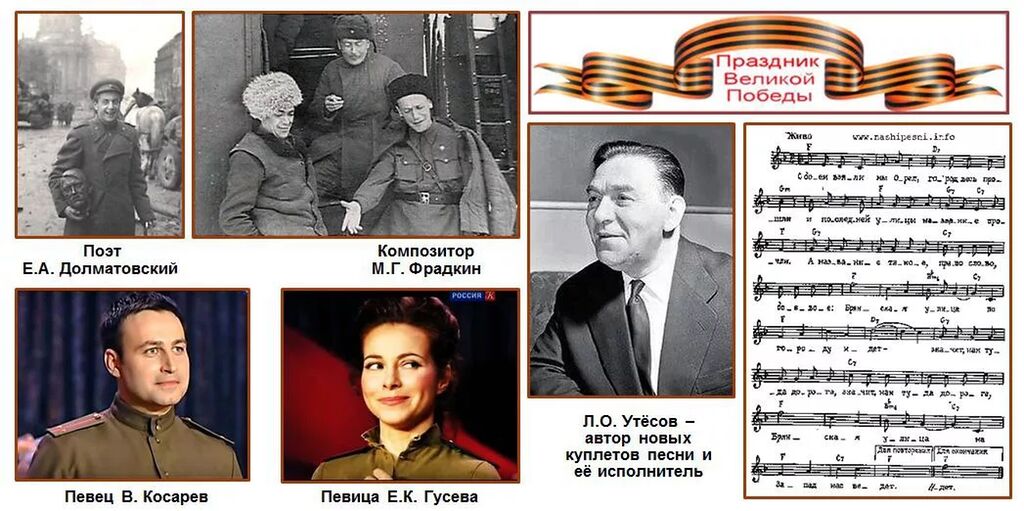 История песни весьма любопытна. Наши войска освободили Орёл и Брянск. А в ноябре 1943 года в освобожденном от гитлеровцев белорусском городе Гомеле сотрудник одной из фронтовых газет, поэт Евгений Долматовский написал стихотворение «Улицы-дороги»: