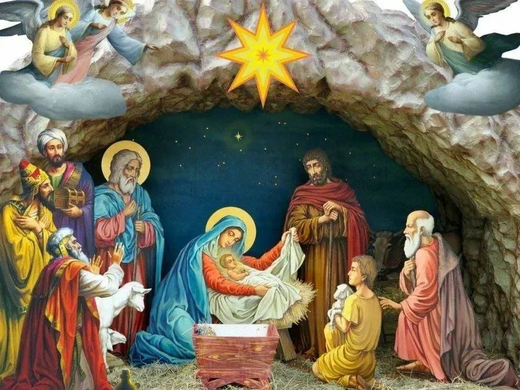 О рождении Спасителя возвестила яркая Вифлеемская звезда. Она служила путеводителем для волхвов (мудрецов и астрономов с Востока), пришедших к святому семейству с дарами для новорождённого: золотом (как царю), ладаном (как Богу) и смирной (как человеку, которому предстоит смерть).
