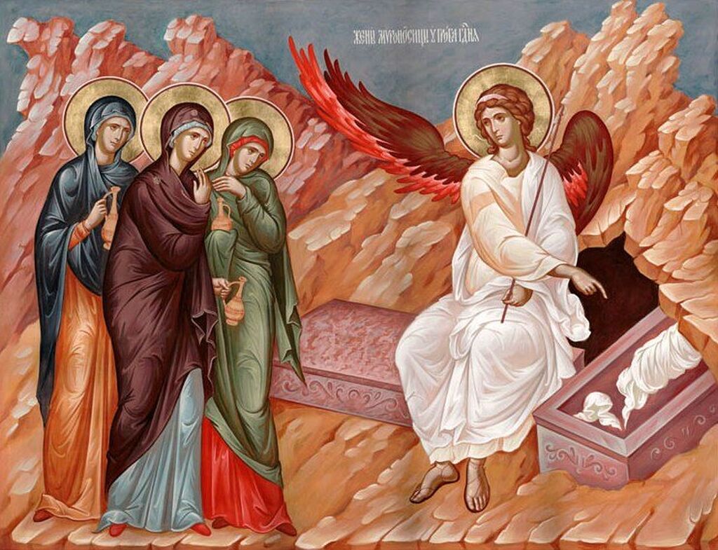 Среди женщин, которые пришли к пещере, была Мария Магдалина. Ей первой явился воскресший Христос, и она пошла сообщить императору Тиберию, что Иисус Христос воскрес. С пустыми руками она не могла к нему прийти и взяла в качестве подарка с собой яйцо.