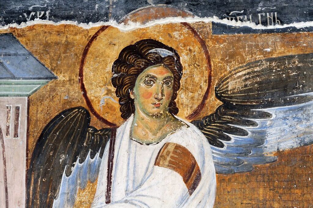 Образному строю этой молитвы близко изображение древней фрески XIII в. «Ангел». Спокойный лик ангела, обрамленный светящимся ореолом, знаком святости, выразительные глаза, его светлые одежды, раскрытые крылья, сочетание голубых, белых, золотистых красок создают образ покоя, величия.